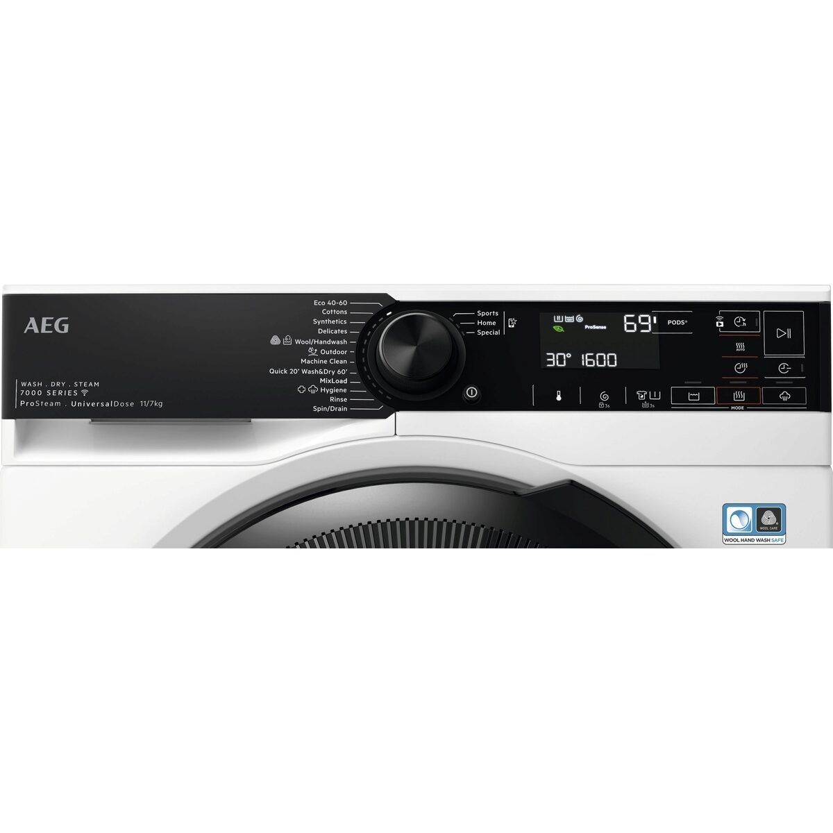 Пералня със сушилня 7000 ProSteam® е перална машина 3 в 1, която рационализира процеса на пране с програми за изпиране, сушене и освежаване с пара. Парата използва 96% по-малко вода* и е по-нежна от прането, като помага на дрехите да изглеждат перфектно за по-дълго време.*
