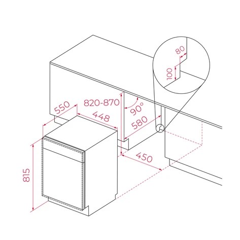 Специална система позволява монтаж на мебелна врата с височина 800 мм, без да се налага изрязване на цокъла. При отваряне на съдомиялната вратата се плъзва нагоре. Наличието на тази система зависи от конкретния модел съдомиялна машина!